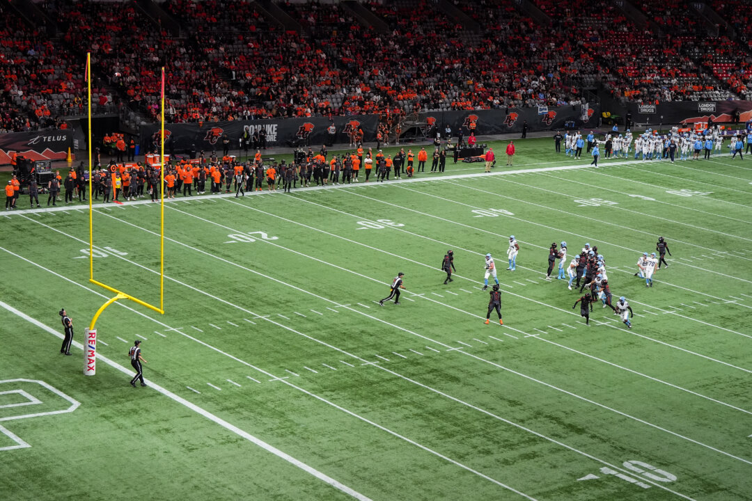 Toronto Argonauts’ Lirim Hajrullahu (70) kicks a successful field goal during the second half of a CFL football game against the B.C. Lions, in Vancouver on Sept. 26, 2025. The Canadian Press/Darryl Dyck