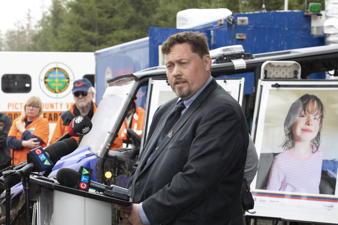Nova Scotia RCMP Staff Sgt. Rob McCamon speaks to reporters about the search for missing siblings Lilly and Jack Sullivan, on May 7, 2025. The Canadian Press/Ron Ward