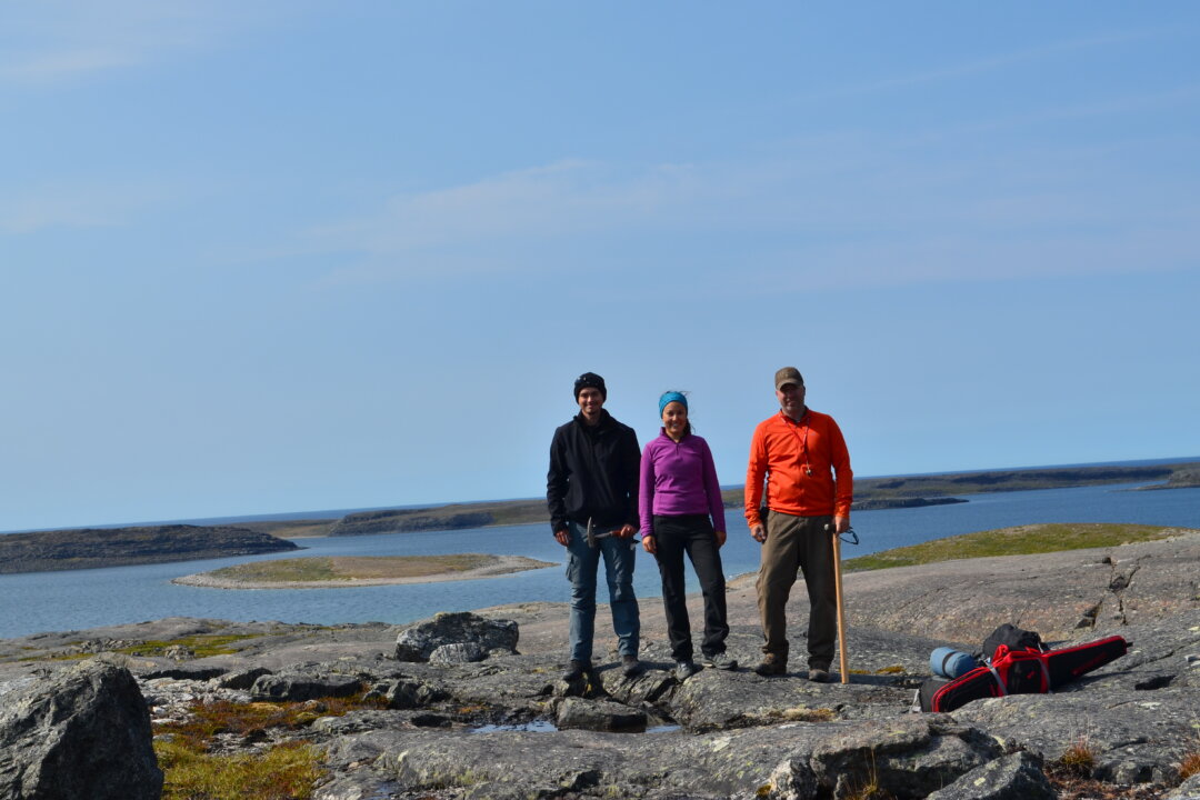 Christian Sole, Hanika Rico, and Jonathan O’Neil on the Nuvvuagittuq Greenstone Belt in northern Quebec. Courtesy of Jonathan O’Neil