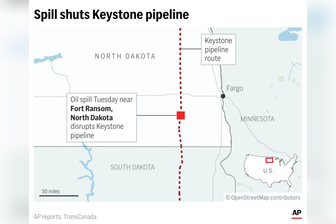 The spill happened in a rural field about 100 kilometres southwest of Fargo, N.D.