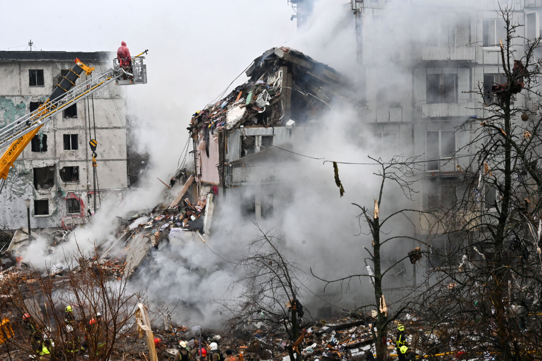 A damaged residential building after a missile strike in Poltava, Ukraine, on Feb. 1, 2025. Sergey Bobok/AFP via Getty Images