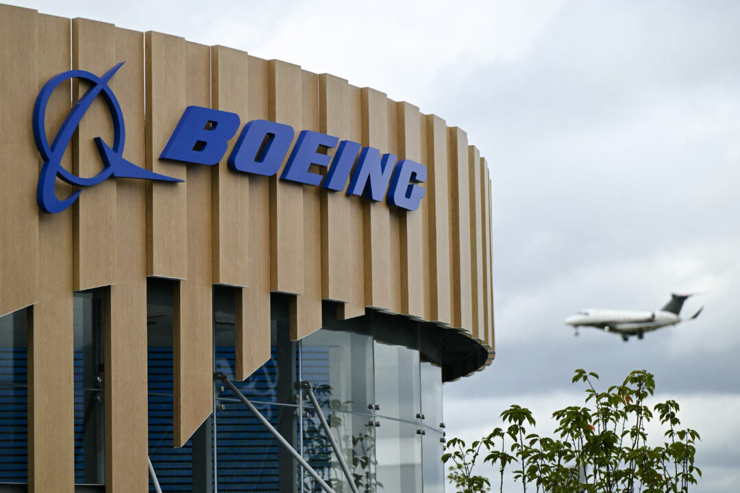 The Boeing stand at the Farnborough International Airshow in London on July 22, 2024. Justin Talli/AFP via Getty Images
