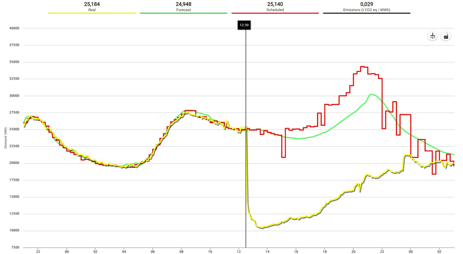 When analysing the available data available from REE between 12:30 and 12:35, we can observe several unusual events.