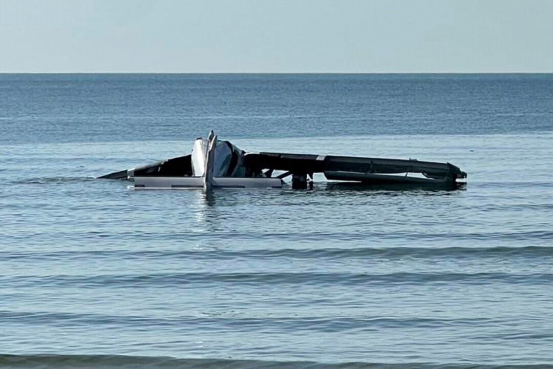 The photos show the plane in the sea about 330 feet offshore. The body of the plane appeared to be broken in two.