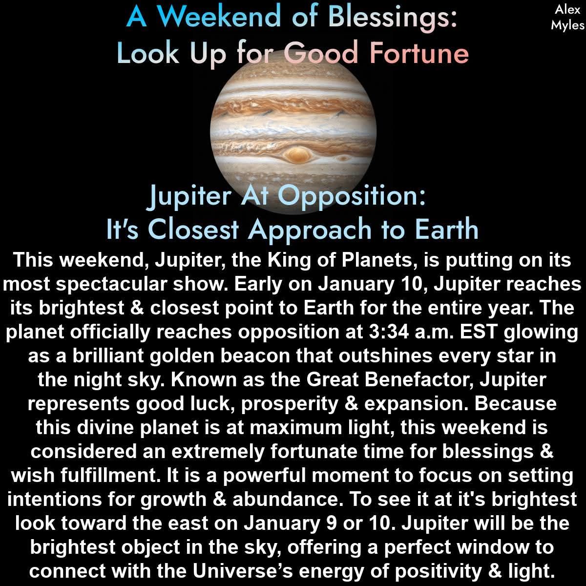 This weekend is considered an extremely fortunate time for blessings and the fulfillment of deep wishes. The bright light of Jupiter is seen as a signal for good luck and the opening of new, prosperous doors in life.
