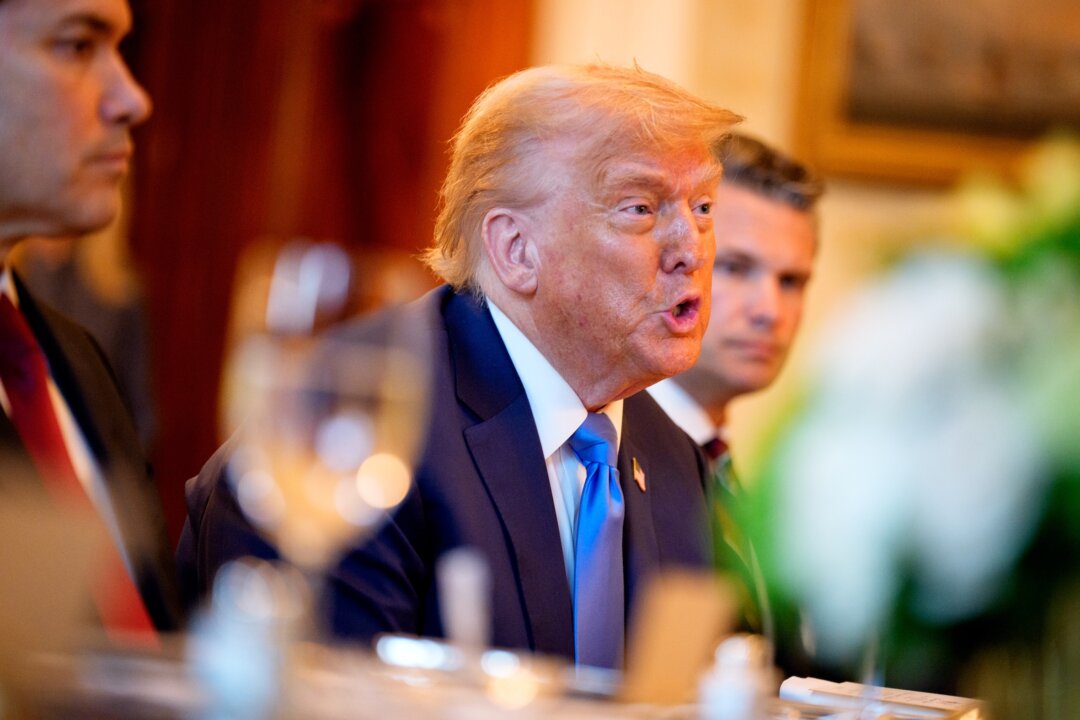 President Donald Trump speaks during a dinner with Israeli Prime Minister Benjamin Netanyahu in the Blue Room of the White House in Washington on July 7, 2025. Andrew Harnik/Getty Images