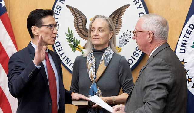 Ho K. Nieh is sworn in as a U.S. Nuclear Regulatory Commission member by former Commissioner William Ostendorff as his wife, Kerry, observes in Washington on Dec. 16, 2025. U.S. Nuclear Regulatory CommissionPresident Donald Trump has tapped Ho K. Nieh to chair the five-member Nuclear Regulatory Commission (NRC), marking the third leadership change in less than a year at the nation’s nuclear safety agency.Nieh was among two commissioners appointed in December to fill seats vacated by Christopher Hanson, fired in June after being removed as chair on the president’s first day in office, and Annie Caputo, who resigned in July.