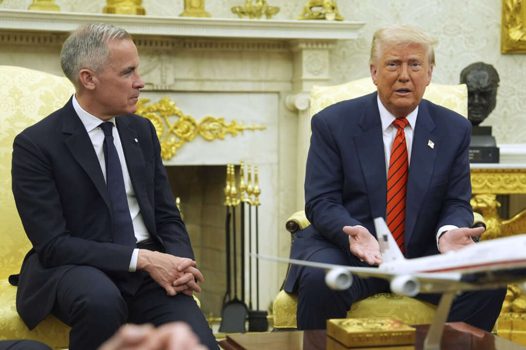 President Donald Trump meets Canadian Prime Minister Mark Carney in the Oval Office of the White House, in Washington, D.C., on May 6, 2025. AP Photo/Evan Vucci