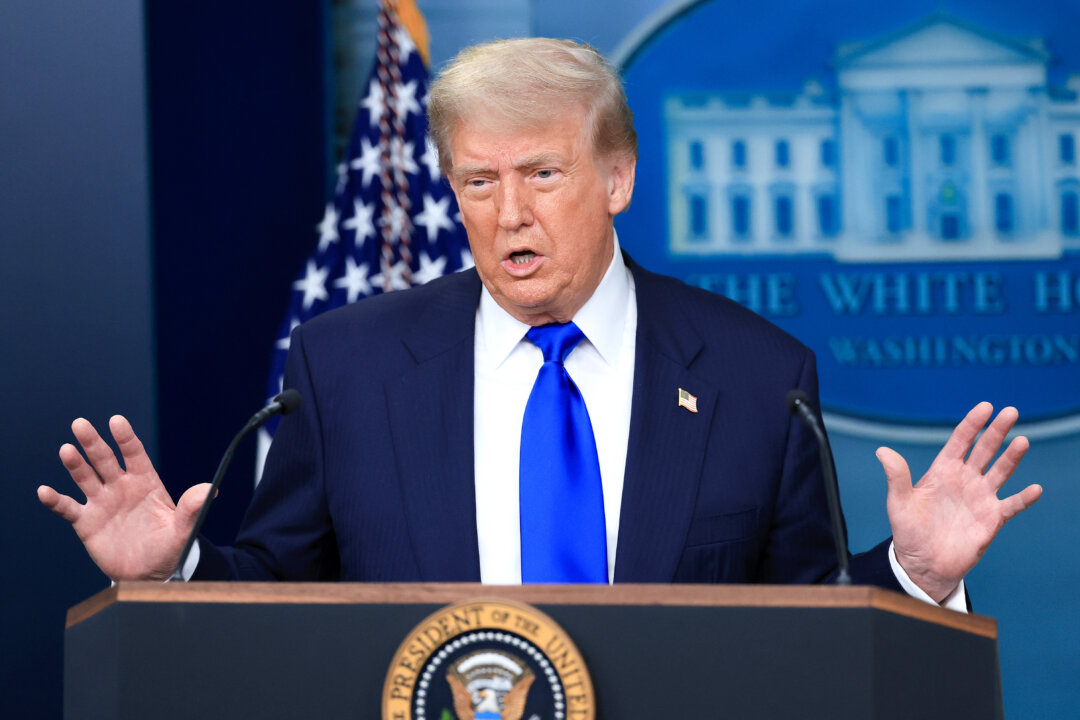 President Donald Trump answers questions during a press conference on recent Supreme Court rulings in the briefing room at the White House in Washington, on June 27, 2025. Joe Raedle/Getty Images