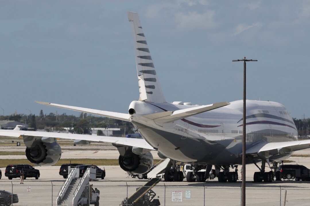The plane Trump toured has the tail number P4-HBJ, according to Planespotters.net. It appears to be a 747-8KB model manufactured at Boeing’s assembly facility in Everett, Washington, and first delivered in 2012. The plane was initially operated by Qatar Amiri and is currently operated by Global Jet.