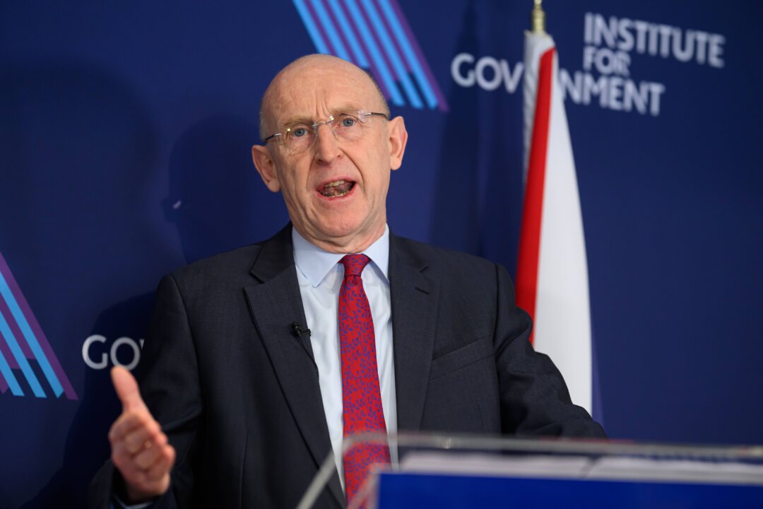 British Defence Secretary John Healey delivers a speech in London on Feb. 18, 2025. Leon Neal/Getty Images