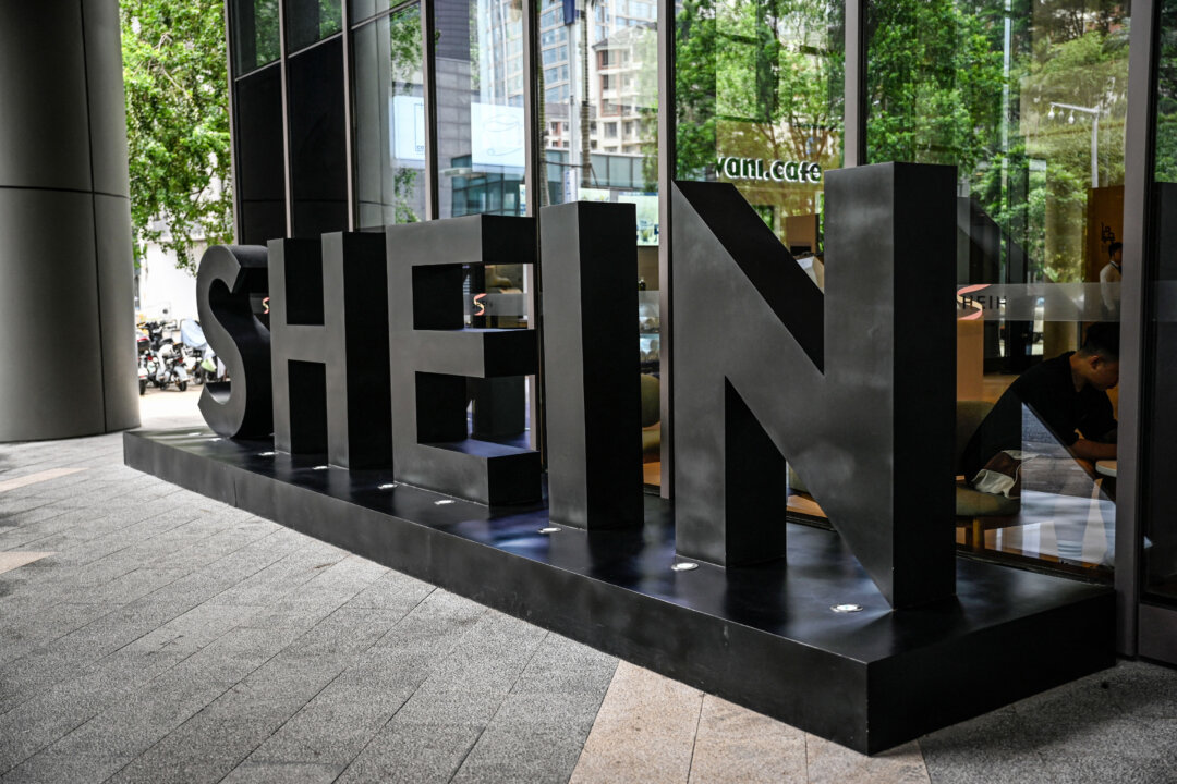 The logo of fast fashion e-commerce company Shein outside its office in Guangzhou, China, on June 11, 2024. Jade Gao/AFP via Getty Images