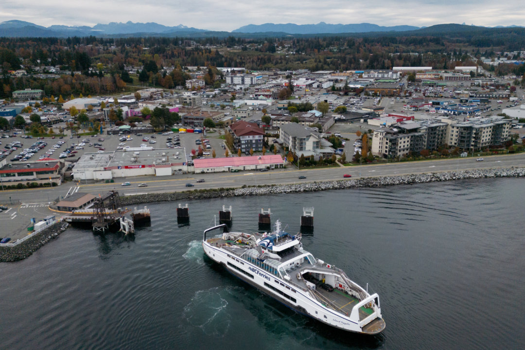 The BC Ferries vessel Island Nagalis, an island class ferry used to service Quadra Island, arrives in Campbell River, B.C., on Oct. 11, 2024. Darryl Dyck/The Canadian Press
