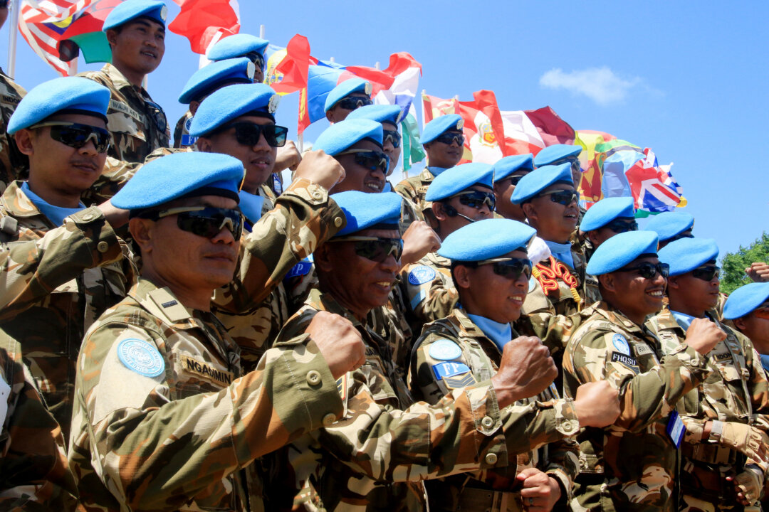 Peacekeeping troops from the United Nation Interim Forces In Lebanon (UNIFIL) commemorate the 77th anniversary of U.N. Peacekeepers Day in the forces headquarters’ base in the southern Lebanese village of Naqoura on May 29, 2025. Mahmoud Zayyat/AFP via Getty Images