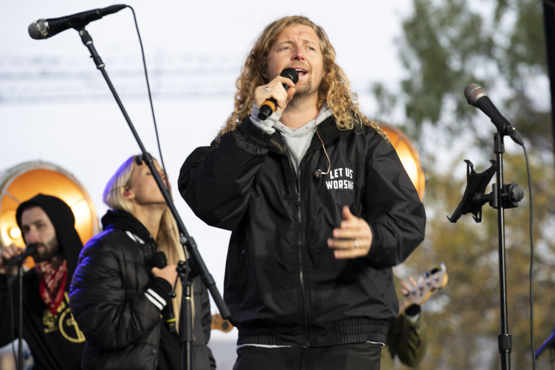 Christian musician Sean Feucht of California preaches to the crowd during a rally at the National Mall in Washington, on Oct. 25, 2020. Jose Luis Magana/AP Photo