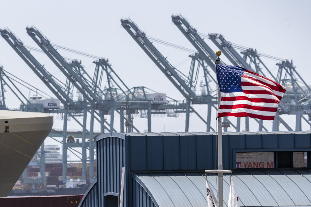 An American flag blows in the wind near the Port of Los Angeles, Calif., on March 28, 2025. John Fredricks/The Epoch Times