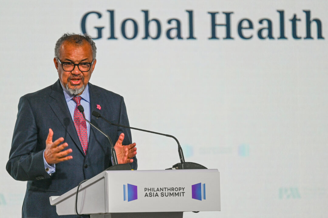 World Health Organisation (WHO) Director-General Tedros Adhanom Ghebreyesus delivers a speech during the Philanthropy Asia Summit in Singapore on May 5, 2025. Roslan Rahman/AFP via Getty Images